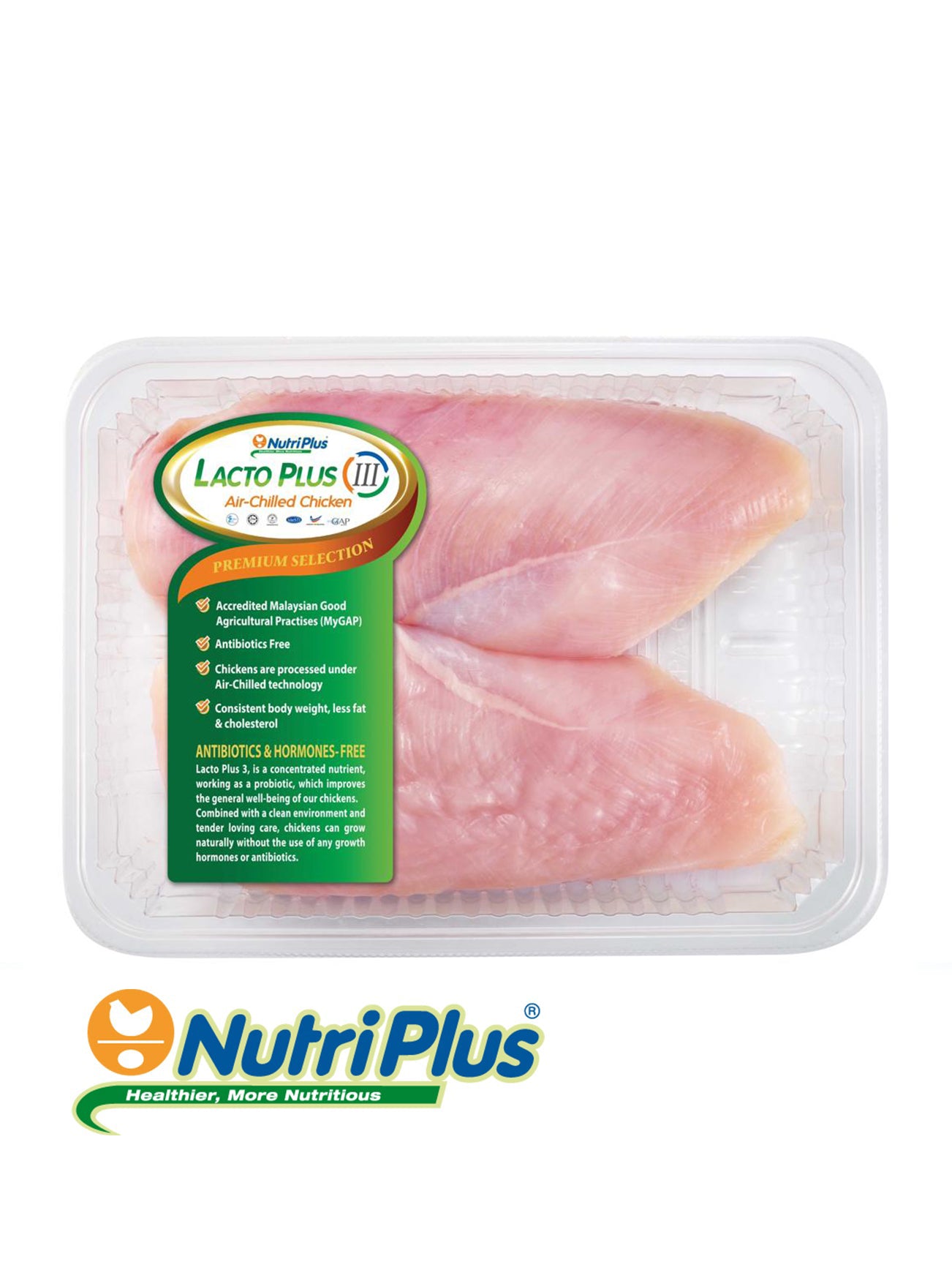 LACTO PLUS CHICKEN SKINLESS BONELESS BREAST (+/- 500G)
