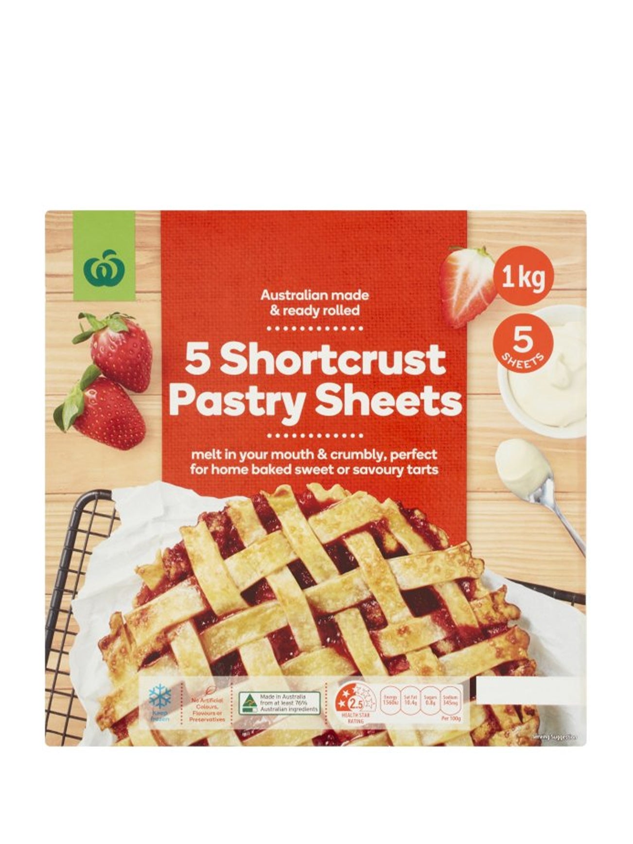 WOOLWORTHS SHORTCRUST PASTRY SHEETS 1KG